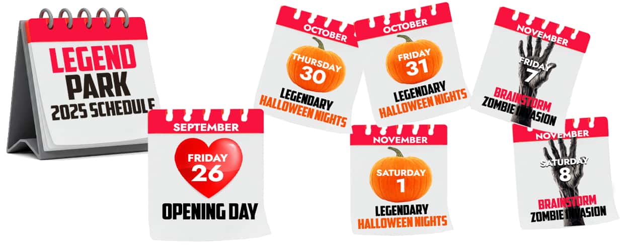 At Legend Park, every season we add many new experiences, games, food options, entertainers, and other fun things to do, to keep the park fresh and exciting. Whether you come for the scares, the food, the entertainment, or the family fun, Legend Park delivers the thrills and memories for everyone.